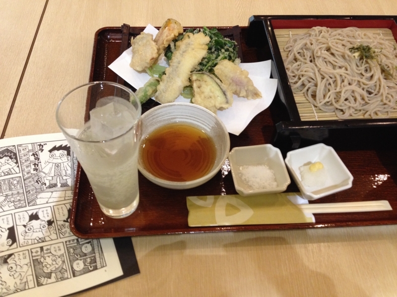 家族亭で「高知フェア」をしていてマグロやうるめの天ぷらが入った天ざるそば。