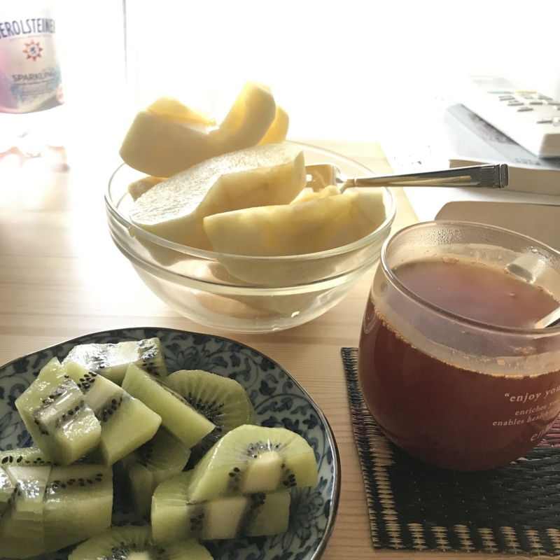 今はもらいもののおいしいりんごを食べてるし、夜にはもらいものの台湾ラーメン(名古屋名物…)を食べる予定。