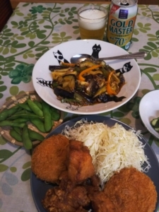 肉屋で揚げ物も買ってしまったので、グビグビ~♪