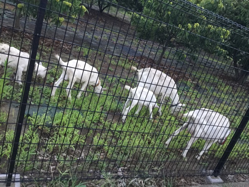 暑いですね。まあ、暑いところには慣れました。ここをリオだと思いましょう。海はないけど…栗畑があって山羊さんがいます!