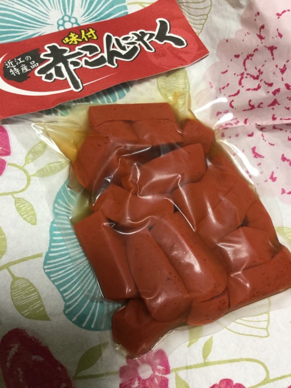 滋賀県のアンテナショップといえば、この赤いこんにゃくも美味しかったです♪ 味付きを買うとすぐに食べられていいですね。