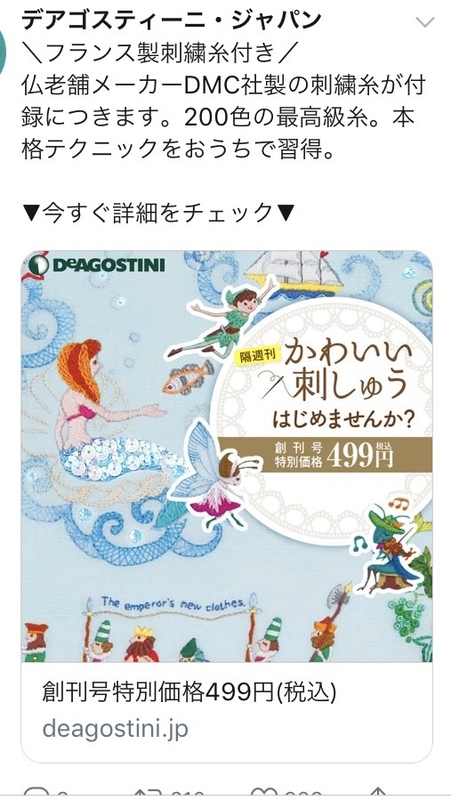 私が最近刺繍気になってることをツイッターが気づいた広告を…!(笑)
