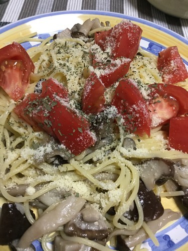 作りおき塩麹キノコの味が強すぎるので(栃木人め…)、パンチェッタのような役割に。パスタの味付けはこれだけでOKですのよ♪