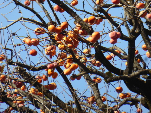 柿がたわわです。背の高い木なので、鳥に食べてもらうしかありません。