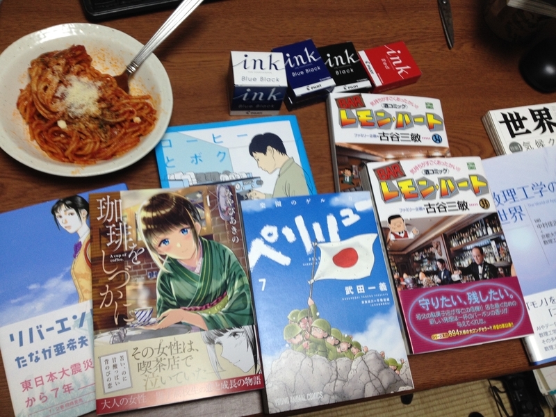 週末にコミックもまとめ買い。フルーツ宅配便とペリリューはうっかり最新刊をまた買ってしまった(コミックは中身が確認できないのだもの)。この町では岩波書店を扱っているのが2軒しかない。「世界」を見るとレアアイテムのように感じて買いがち。