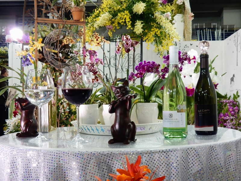 ディスプレイ部門にて。エビネ畑の奥にお嬢さん方が。