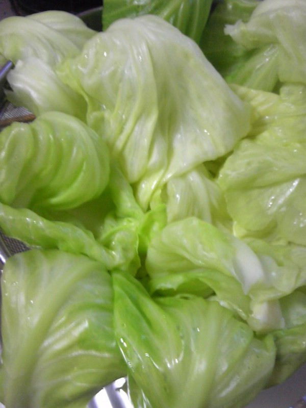 キャベツ丸茹ですると、葉っぱが一枚一枚苦もなく自然にはがれていきます。