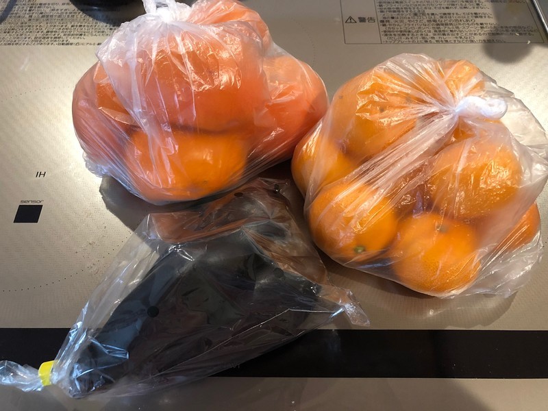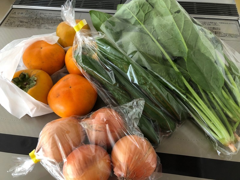 みかんは有田のが300円、同じ和歌山でも別の地区産のはもっと味が濃いとかで500円。そう言えば去年はそれを買っていたなあと思いながらも、まだシーズン初めなので有田の方を。野菜はどれも100円だった。