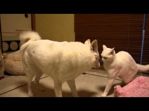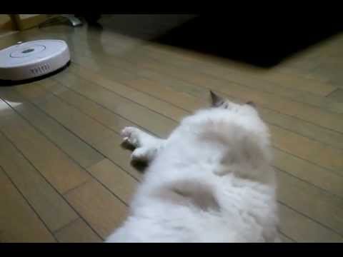【気の強い白猫・ルンバを蹴る猫】