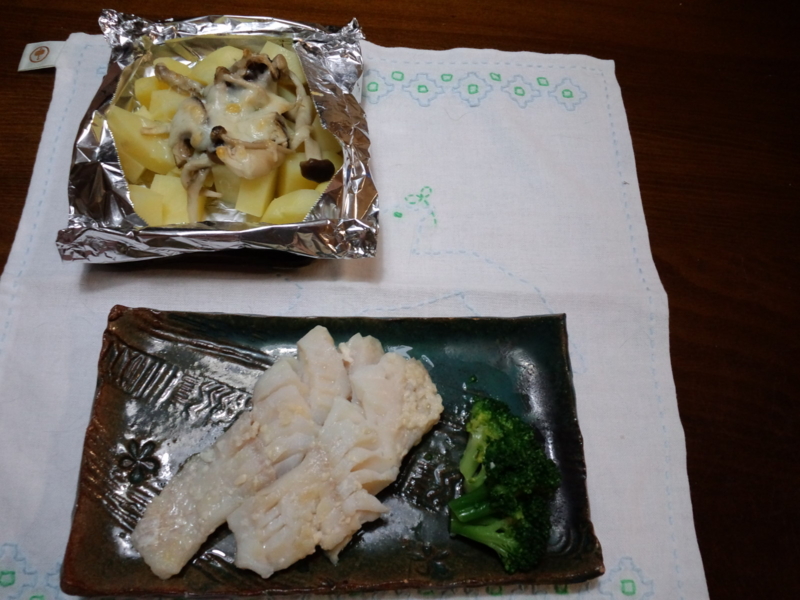 丸2日経った鱈の塩麹焼きと、ジャガイモの塩麹きのこチーズ焼きです。