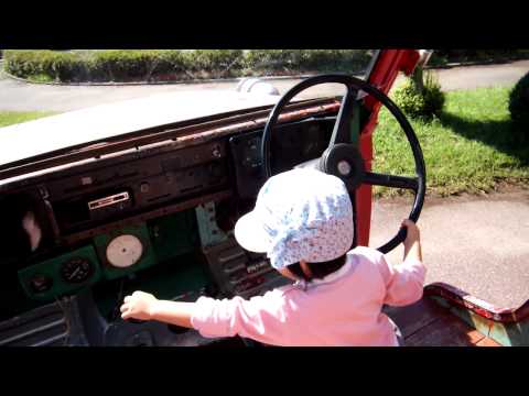 立たせて運転機器を見せると、「これなあに?」の連続攻撃。4歳児にわかるように説明するのは難しい。