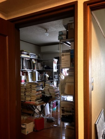 本棚の上、神棚くらいの高さにあるので、かなり供物っぽい。