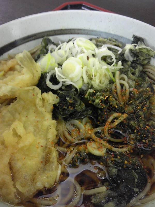 魚天そば(410円/天ぷらはエビ・イカ・キスからチョイス。当たり前ながらキスを選択)にのせてもらいました。