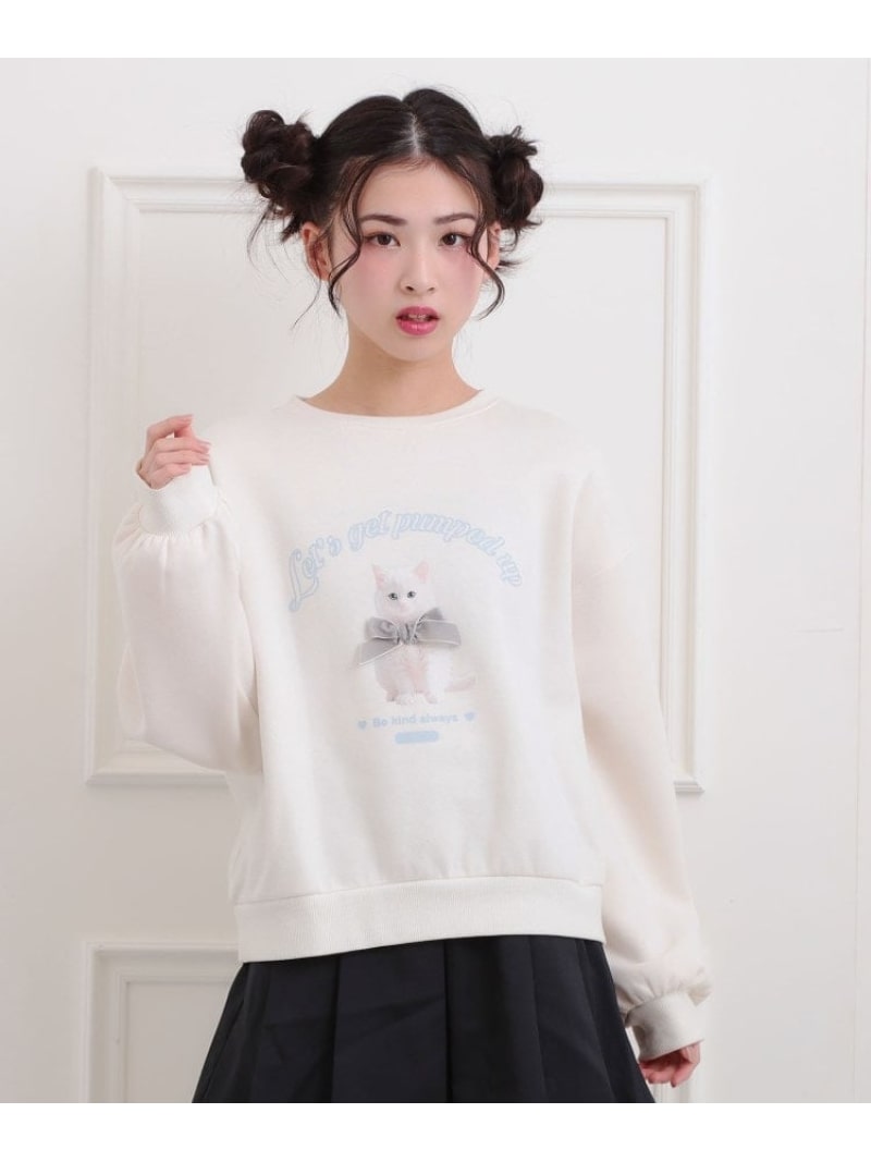 - ベロアリボンネコフォトトレーナー PINK-latte ピ…