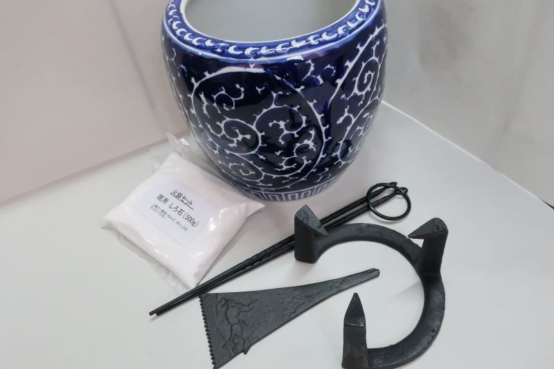 - 手火鉢セット、火鉢20×20cm、五徳(小)、灰慣らし、…