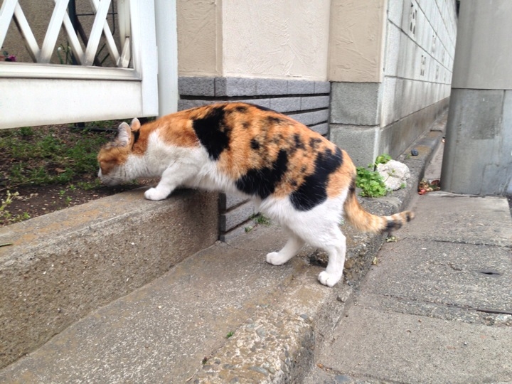何かと思って振り向いたら、塀の上にヘビー級の猫さんがいた(^ω^)
