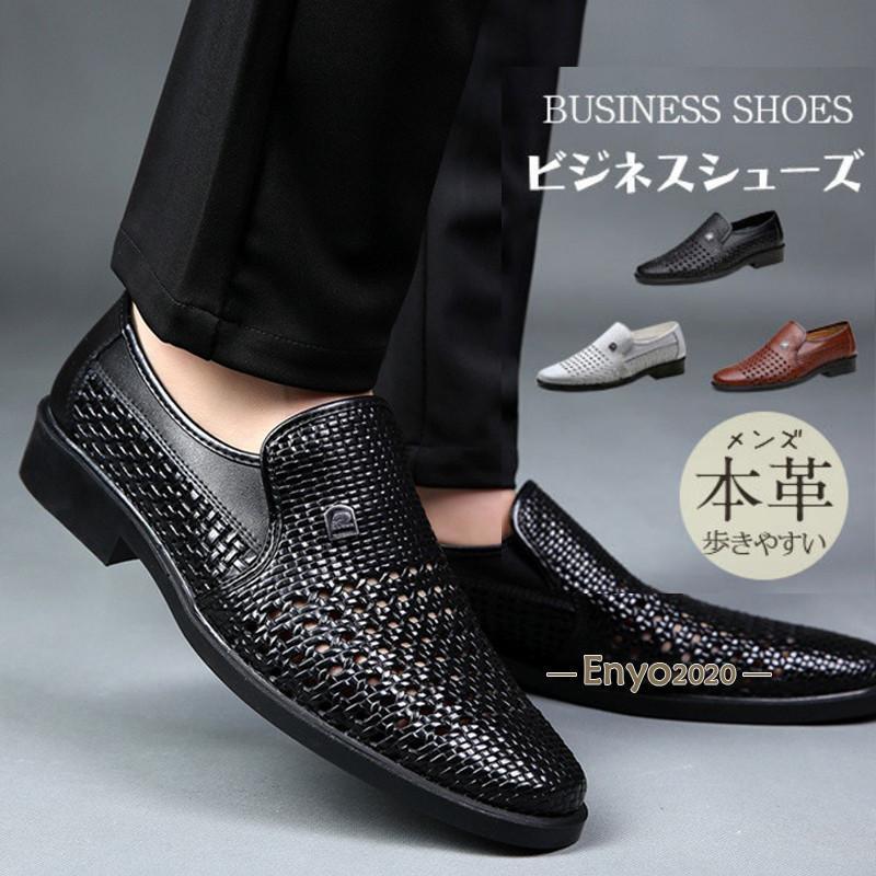 - 夏用ビジネスシューズ 暑くない 本革 メッシュビジ…