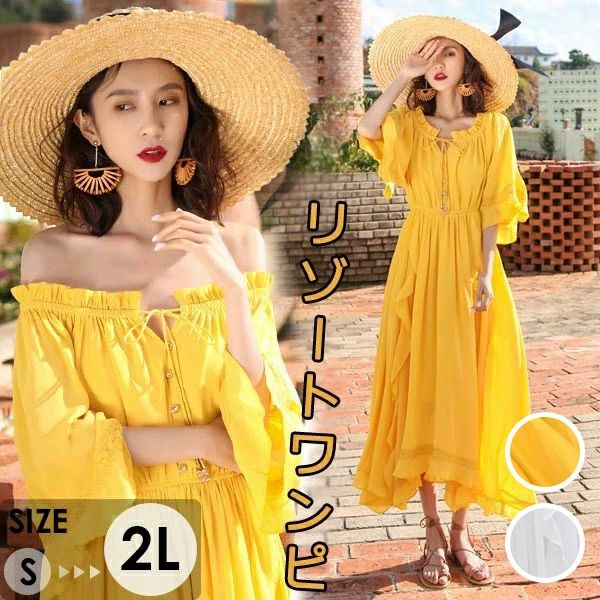 - リゾートワンピース 沖縄 オフショルダー ティアー…
