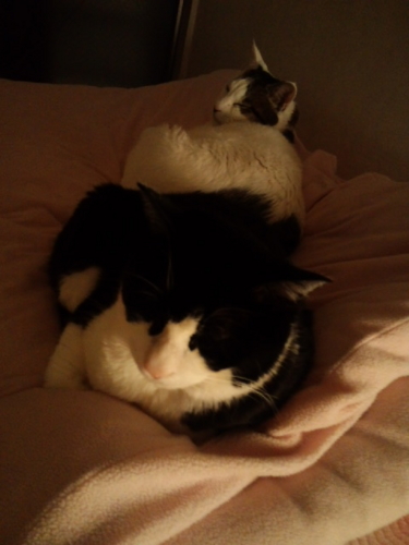 昨夜、寝室に現れたニンゲンに、あからさまに迷惑そうな二人