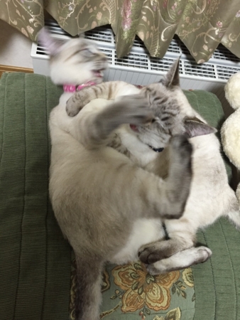 仲良く寝ているかと思えば、そのうち始まる姉妹喧嘩(きょうだいげんか)。