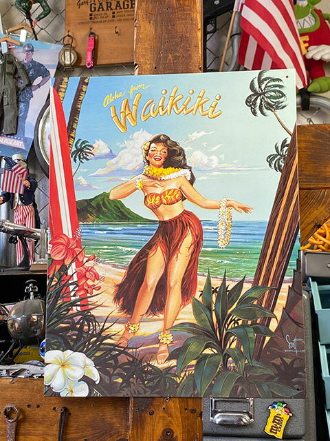 アロハ・フロム・ワイキキ ブリキ看板 アメリカ…