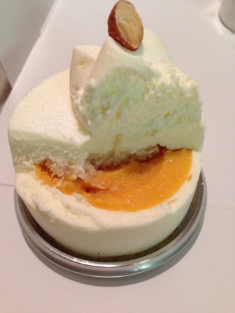 白い部分は杏仁っぽいムースで中にはマンゴームースが入って美味しかったです。
