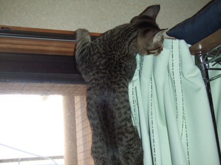 これは気象予報士さんの持つ指し棒の先にじゃれようと見つめる野性の名残(?)な後頭部
