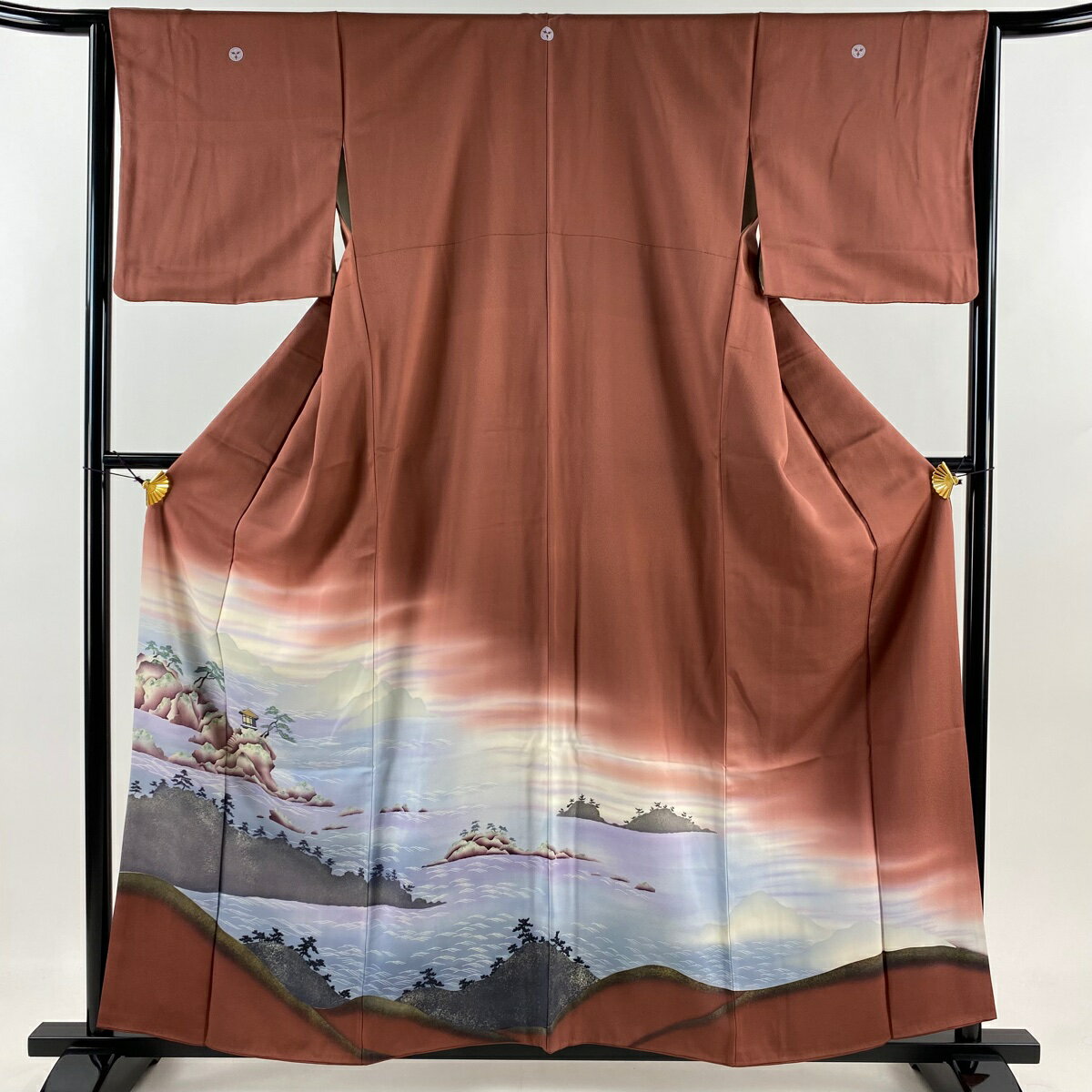 - 色留袖 身丈159cm 裄丈65cm M 袷 水辺の風景 霞 金…