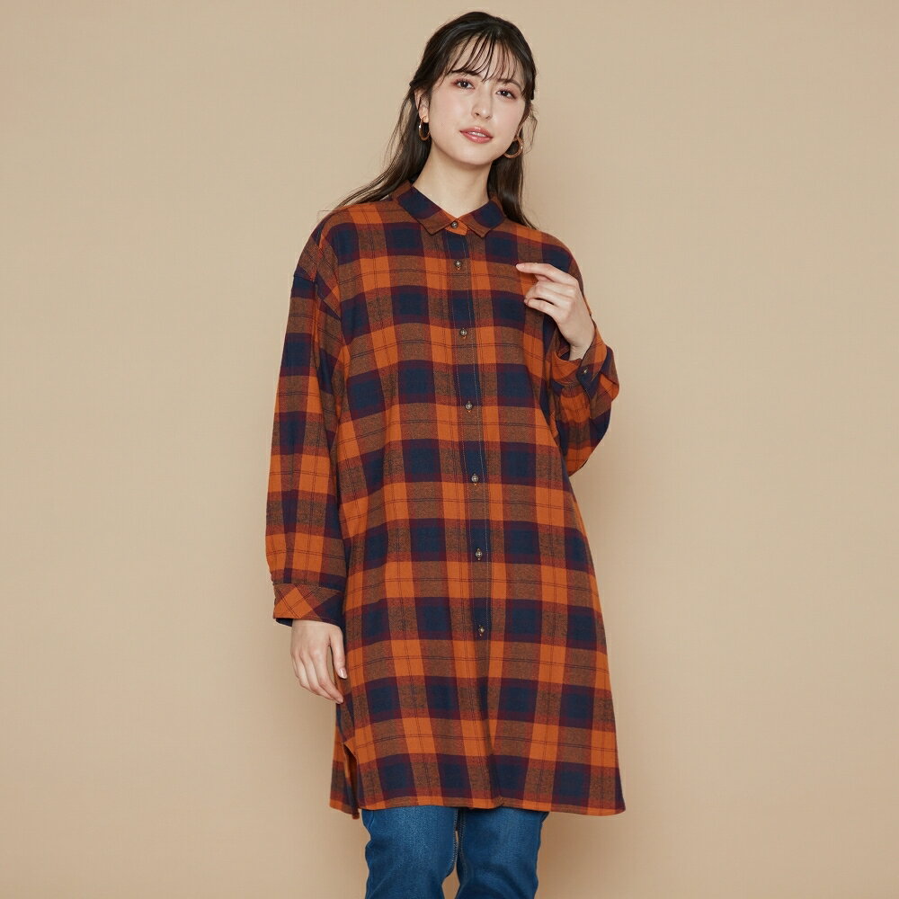 【洗える】起毛チェック柄ロングブラウス /アル…