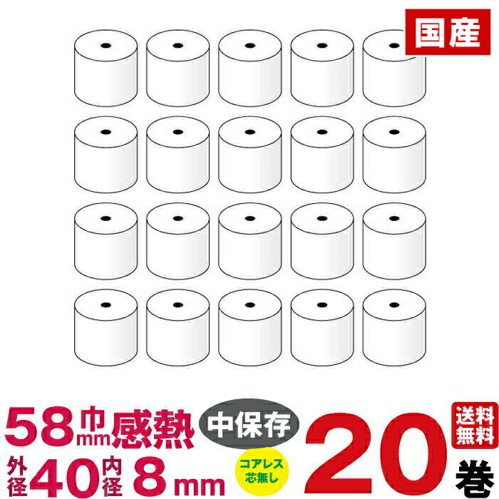- 感熱紙レジロール 幅58×外径40×内径8mm 20巻入り …