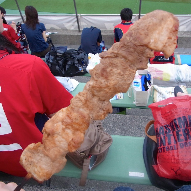 溶岩串焼は、甲州乳酸菌豚のお肉を富士山の溶岩石のプレートを使って焼いたもの。