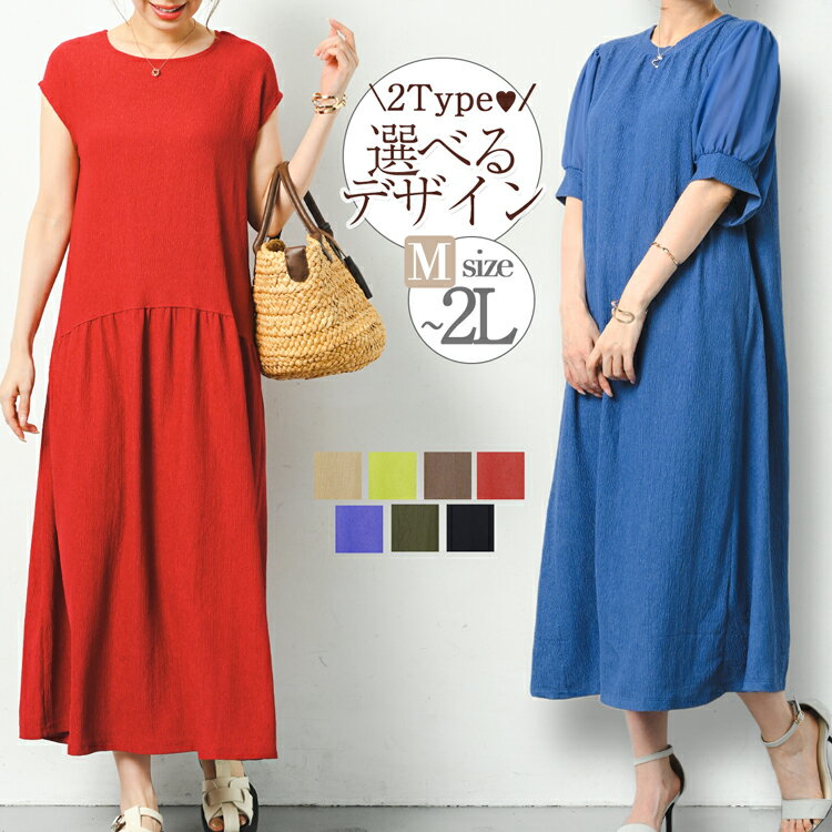 - ロングワンピース 半袖 レディース 切り替えワンピ…