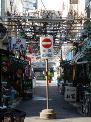 とりあえず、どこでも入り込んで見つけた「初音小路飲食店街」はアーケードのような藤棚が頭上を覆っていました。