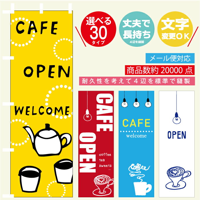 - のぼり旗 カフェ 寸法60×180 丈夫で長持ち【四辺標…