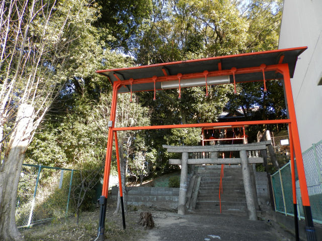 鳥居から神社まで東西に参道が残っていますが、『飯盛山城と三好長慶』収録の福島克彦氏「河内の寺内町と都市論」にはここがその直線路の跡かも?とありました。また、この空間には今は自治会館や消防団の施設が建っています。