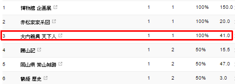 検索ワードも上位20位あたりまでほぼ常山城の鶴姫関連で占められてますが、15位に沙沙貴神社が。沙沙貴神社は結構安定してアクセス来るんですよね。