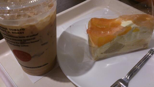 洋梨と黄桃のタルトとアイスミルクティをいただきました。