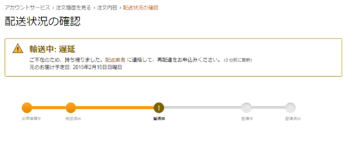 『アマゾンの配送状況の確認で配送状況が「お近くの配達店まで輸送中です」になっていたのでコンビニへ行って帰ってきたら不在伝票が置かれていた』何を言っているのかわかりたくありません。