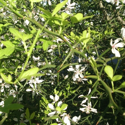 実家の柚子の木。植えて何年にもなるのだけど初めて花が咲いた。