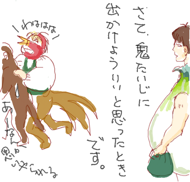 桃太郎ってどんなヤツ登場したっけ?って検索欄に入れたら 腿太郎 と変換されていやになりました・・・