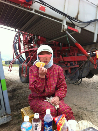 昨日と一昨日は人手がなくて農家の旦那さんと奥さんと中国からの研修生と自分しかいませんでした。研修生は4月から11月まで普段は農協の選果場で働いて農家が忙しい時は農家に来ています。日本語の勉強をしてくるので片言の日本語がしゃべれます。