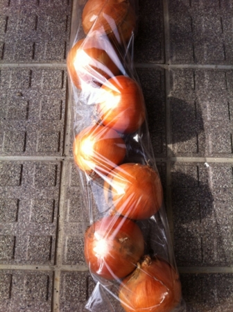 一個30円の玉ねぎを袋に詰め放題で150円でした。