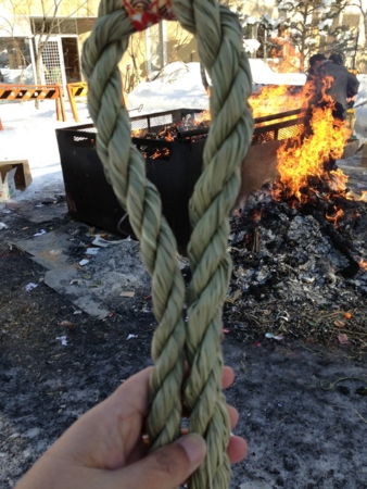 昨日の話しですが、地元神社のどんど焼きにお正月のしめ縄飾りと