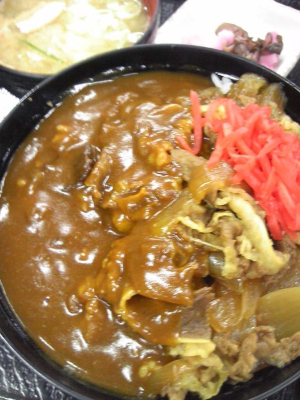 なすのぶっかけうどんと温玉カレー丼