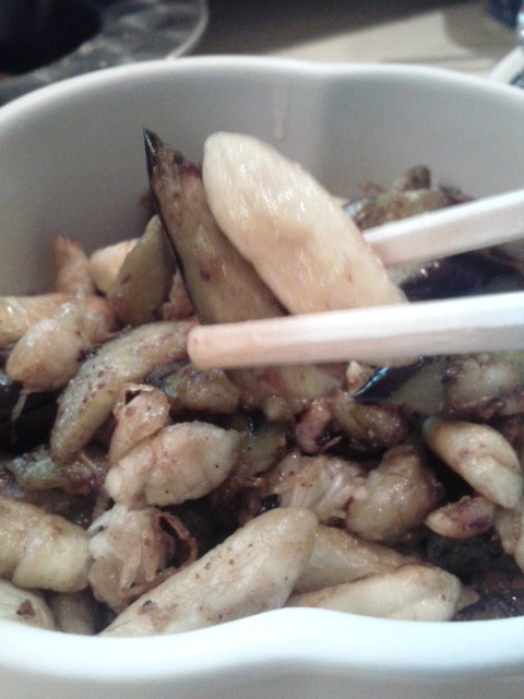 ナスと炒めてあるそれのいと香ばしき。米焼酎とピッタリ。ラブ