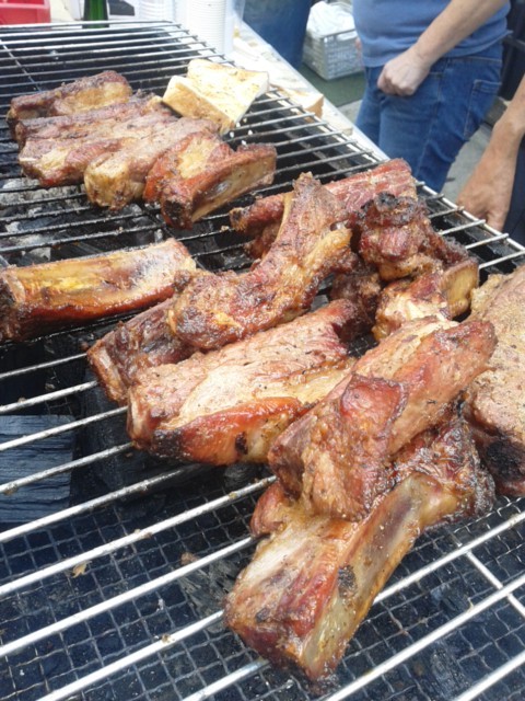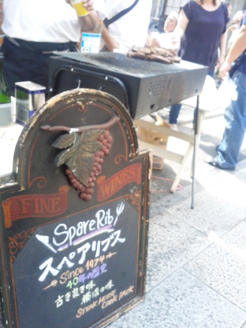 野毛大道芸にてステーキハウスクックパックツルオカのスペアリブ、グラスワインとセットで1000円!めっちゃウマー!