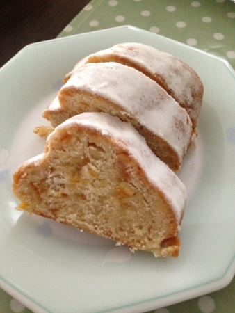 寝坊して朝ごはんは旅行で買ってきたシュトーレンを食べました。