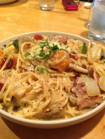 友人とランチの約束をしていて三人でパスタを食べに行きました。