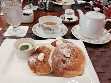 札幌に着いてまめ夫さんの仕事関係の近くでパンケーキと紅茶をいただきました。