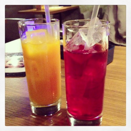 友達のマンゴージュースと私のクランベリージュース@Dexee Diner Ebisu